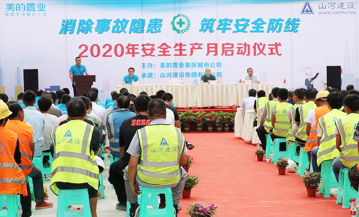 為進(jìn)一步夯實(shí)安全生產(chǎn)管理基礎(chǔ),增強(qiáng)全員安全生產(chǎn)責(zé)任意識(shí)和安全事故防范意識(shí),6月10日,美的置業(yè)川渝區(qū)域重慶城市公司和山河建設(shè)集團(tuán)西南公司聯(lián)合組織開展了以“消除事故隱患 筑牢安全防線”為主題的2020年安全生產(chǎn)月啟動(dòng)儀式,活動(dòng)在西南公司承建的美的云來(lái)項(xiàng)目施工現(xiàn)場(chǎng)舉行。