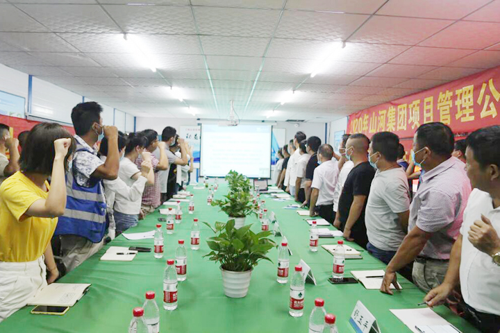 接下來,參會人員全體起立,高舉右手進行宣誓,承諾認真履行管理職責,堅守職業(yè)道德底線,用自己的智慧和努力服務企業(yè),筑就山河品質。