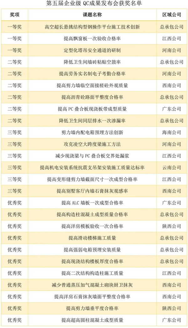 企業(yè)級 QC 成果:QC小組活動是集團堅持不懈開展的一項重要活動,對提高質(zhì)量、降低成本、創(chuàng)造效益起到了積極的作用。企業(yè)級QC成果的發(fā)布,加大了優(yōu)秀成果的展示交流,促進了創(chuàng)新成果的推廣應用,推動集團質(zhì)量管理工作始終向著健康方向發(fā)展。