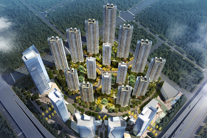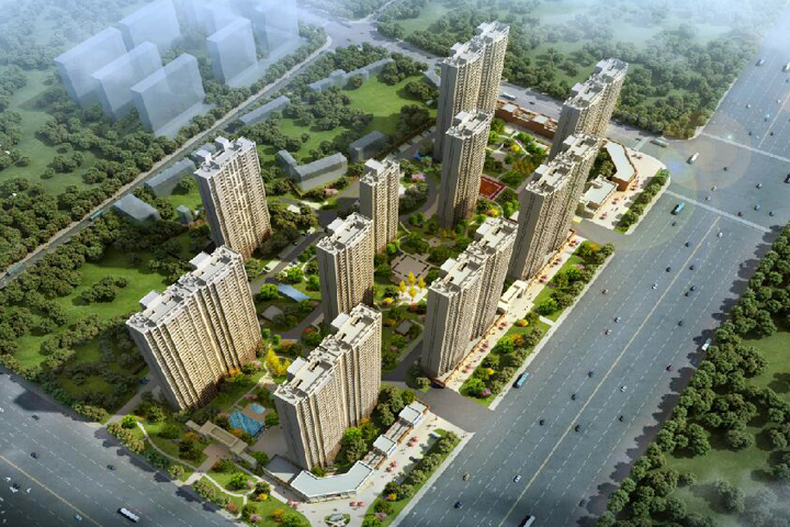 該項目位于武漢市白沙洲大道與八坦路交匯處,總建筑面積約36.29萬平方米,包括4棟地上46層、4棟地上32層、1棟地上42層、4棟地上30層、1棟地上33層住宅樓、1棟地上4層鄰里中心、1棟地上3層幼兒園、1棟地上一層開閉所;地下室框架地下2層。
