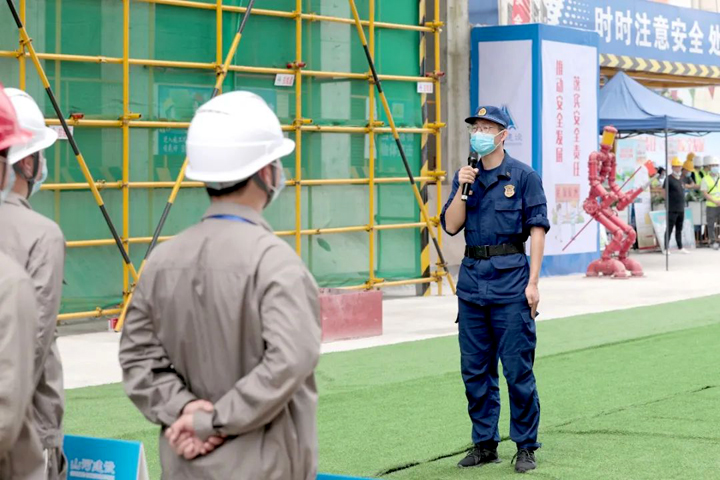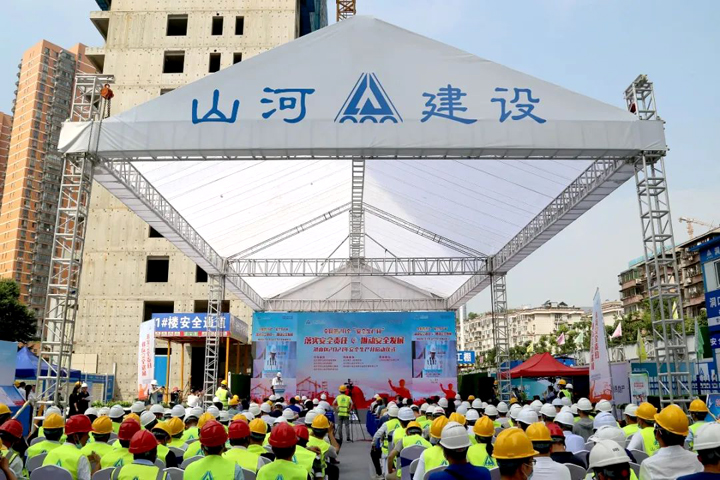 6月2日,武漢市洪山區(qū)2021年“安全生產(chǎn)月”啟動(dòng)儀式暨建筑施工應(yīng)急救援演練活動(dòng)在山河建設(shè)集團(tuán)總承包公司承建的朗詩(shī)·熙華府項(xiàng)目施工現(xiàn)場(chǎng)舉行。洪山區(qū)政府黨組成員牛正可,區(qū)應(yīng)急管理局局長(zhǎng)金昆玲,區(qū)建設(shè)局、消防救援大隊(duì)、和平街道辦事處、建筑管理站等單位領(lǐng)導(dǎo)出席啟動(dòng)儀式,區(qū)發(fā)改局、城管執(zhí)法局、衛(wèi)生健康局、科技和經(jīng)信局、商務(wù)局等近60家單位代表,建設(shè)單位、監(jiān)理單位代表,總承包公司工程團(tuán)隊(duì)及在建項(xiàng)目代表等300余人參加了活動(dòng)。洪山區(qū)建管站站長(zhǎng)錢偉主持啟動(dòng)儀式。