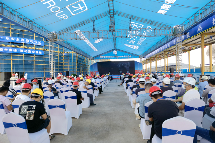 6月9日,山河建設(shè)集團(tuán)海南公司承建的萬(wàn)寧紅星美凱龍三標(biāo)段項(xiàng)目施工現(xiàn)場(chǎng)人頭攢動(dòng),萬(wàn)寧市2021年安全生產(chǎn)月啟動(dòng)儀式暨安全應(yīng)急演練現(xiàn)場(chǎng)觀摩會(huì)在這里舉行。萬(wàn)寧市住房和城鄉(xiāng)建設(shè)局局長(zhǎng)陳云鋒,建設(shè)工程質(zhì)量安全監(jiān)督站站長(zhǎng)嚴(yán)云,安委辦主任、應(yīng)急管理局局長(zhǎng)林靖等領(lǐng)導(dǎo)出席活動(dòng),海南公司常務(wù)副總經(jīng)理程智、工程團(tuán)隊(duì)、項(xiàng)目管理人員及建設(shè)單位、監(jiān)理單位、萬(wàn)寧市各在建項(xiàng)目代表等300余人參加了活動(dòng)。