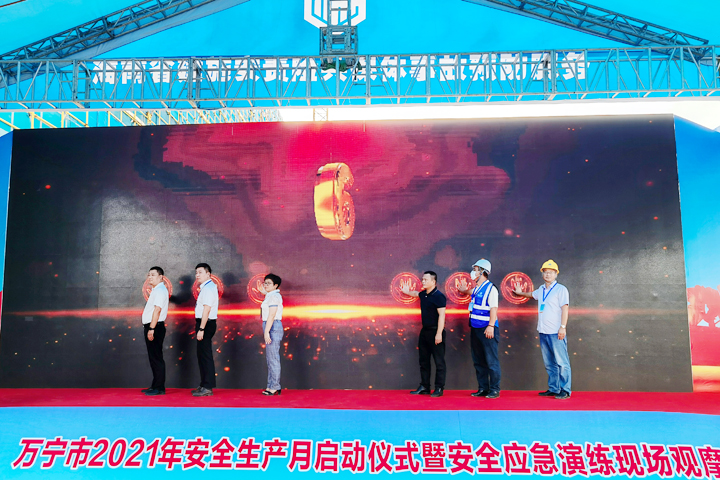 隨后,出席啟動(dòng)儀式的領(lǐng)導(dǎo)依次上臺(tái),共同觸摸大屏幕,宣告萬(wàn)寧市安全生產(chǎn)月活動(dòng)正式啟動(dòng),拉開了全市安全生產(chǎn)月系列活動(dòng)的序幕。