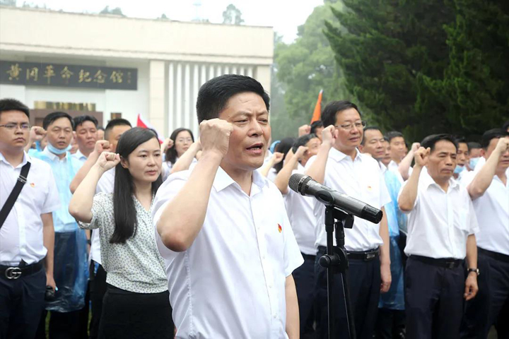 上午9時(shí)許,全體黨員及發(fā)展對象抵達(dá)位于團(tuán)風(fēng)縣杜皮鄉(xiāng)的黃岡革命烈士陵園——為建立鄂東革命根據(jù)地英勇犧牲的烈士們長眠的地方。團(tuán)風(fēng)縣人大常委會(huì)黨組書記、主任丁永忠,縣委常委、宣傳部長董曉燕等領(lǐng)導(dǎo)和大家一起參加了紀(jì)念活動(dòng)。