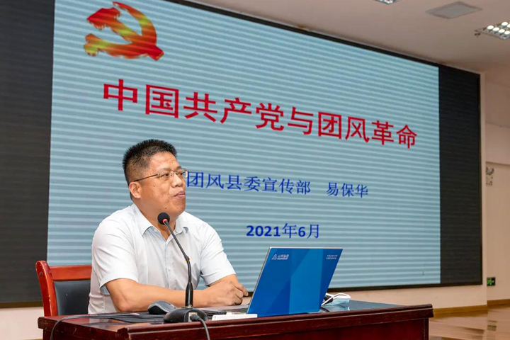 隨后,團(tuán)風(fēng)縣委宣傳部副部長易保華講授《中國共產(chǎn)黨與團(tuán)風(fēng)革命》的專題黨課。團(tuán)風(fēng)自古以來就是兵家必爭之地,這片紅色的土地上,走出了一大批老一輩革命家和名人志士,誕生了全國最早的農(nóng)村基層黨組織,點(diǎn)燃了黃岡革命的火種。老區(qū)人民勇當(dāng)先鋒,敢為人先,“堅(jiān)持28年紅旗不倒”,為中國革命做出了不可磨滅的貢獻(xiàn)。
