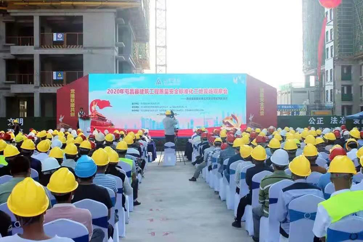 屯昌“林溪緣”項(xiàng)目部堅(jiān)持圍繞生產(chǎn)抓黨建,抓好黨建促生產(chǎn),以打造優(yōu)質(zhì)隊(duì)伍、優(yōu)質(zhì)工程為目標(biāo),黨員干部帶頭沖在前、干在先,高標(biāo)準(zhǔn)、高質(zhì)量、高效率抓好各項(xiàng)工作落實(shí),如期完成節(jié)點(diǎn)施工任務(wù),受到主管部門和業(yè)主的一致好評。2020年11月13日,該項(xiàng)目承辦了屯昌縣建筑工程質(zhì)量安全標(biāo)準(zhǔn)化工地現(xiàn)場觀摩會,展示了“山河造”的品質(zhì)實(shí)力。