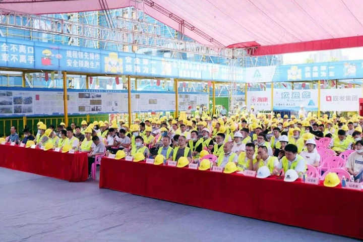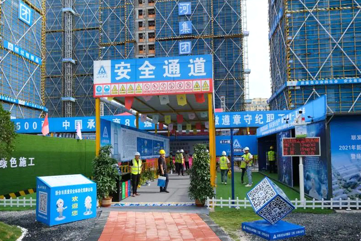隨后,與會代表前往安全體驗區(qū)、工法樣板區(qū)、主體樓棟、實測實量展示區(qū)、安全管理展示區(qū)、施工機具展示區(qū)進行參觀,對施工現(xiàn)場的安全文明標準化建設(shè)、基坑防護欄、噴淋降塵系統(tǒng)等措施給予了充分肯定。