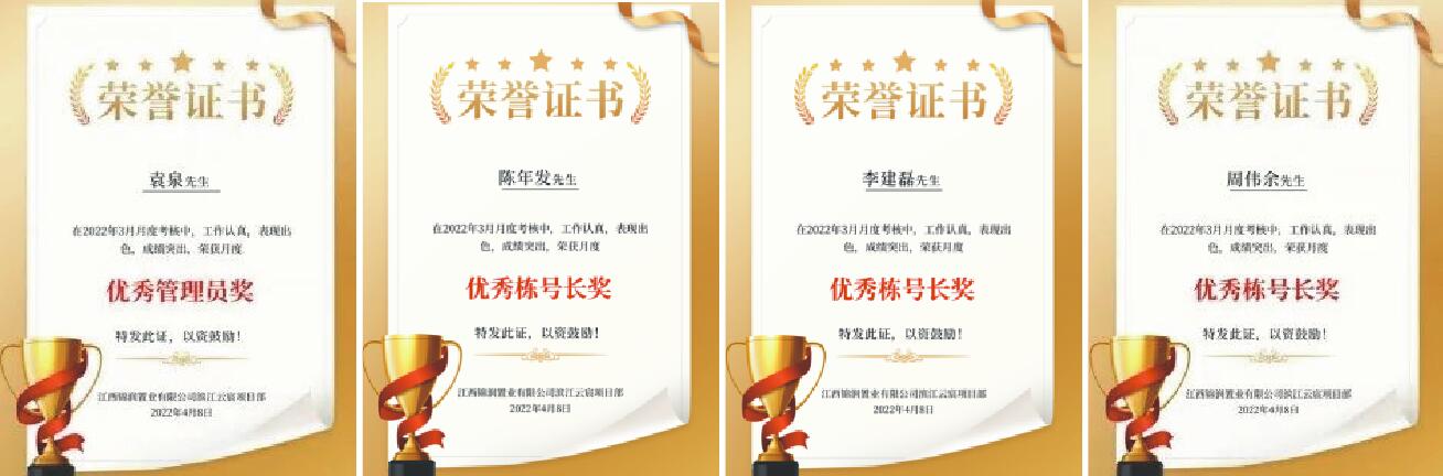 考評結(jié)束后,錦潤置業(yè)對濱江云宸項目的安全質(zhì)量、進(jìn)度落實情況進(jìn)行了總結(jié)分析,并對現(xiàn)場管理人員進(jìn)行了成績排名和表彰。其中,袁泉榮獲“優(yōu)秀管理員獎”,陳年發(fā)、李建磊、周偉余榮獲“優(yōu)秀棟號長獎”。