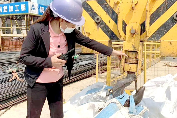▲居住項目(湖北交投產(chǎn)城華園二期)塔吊指揮員在吊裝前對起重設(shè)備吊具進行自檢