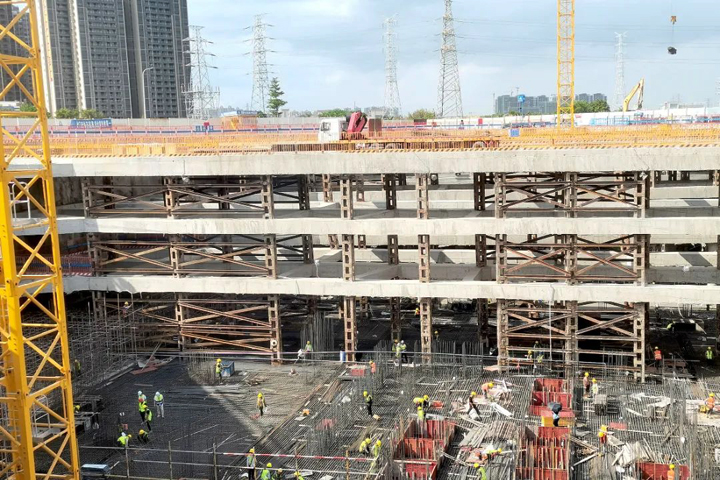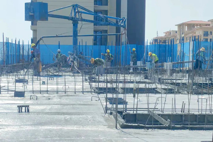 ▲東方碧桂園東方之珠項目二期工人在澆筑混凝土