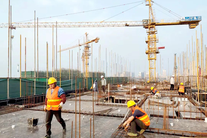 ▲咸陽三原鳳凰府項目工人在制作鋼筋