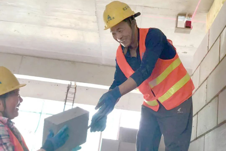 ▲重慶美的萬麓府項目,合作默契的砌筑“夫妻檔”