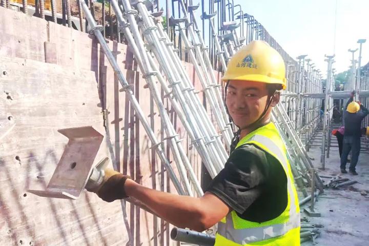 ▲重慶鹿角R1道路項目施工人員在進行道路箱涵模板支撐搭設(shè)