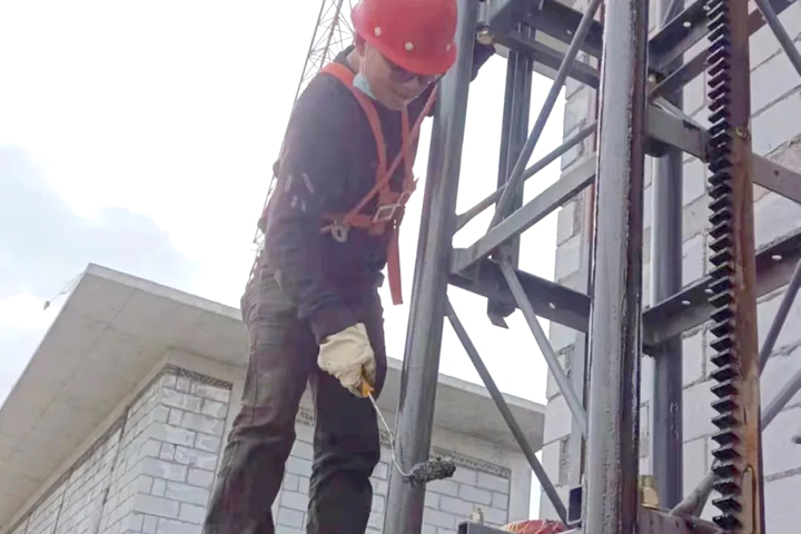 ▲寶雞吾悅廣場項目施工人員對電梯進行維保月檢